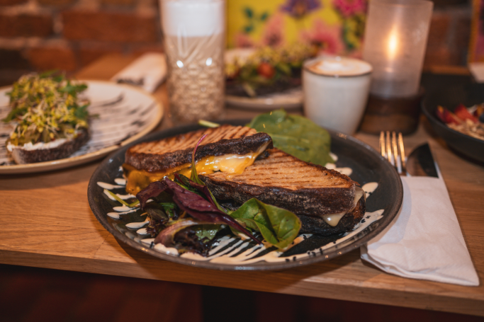 Auf unserer Karte findest du warme Brote wie Grilled Cheese, Smashed Avocado (vegan) oder ein Brot mit meditteranem Antipastigemüse, dazu cremiges Bio-Rührei, Joghurt mit hausgemachter Granola oder ein kleines Frühstück mit Croissant, Cappuccino & frisch gepresstem Orangensaft.