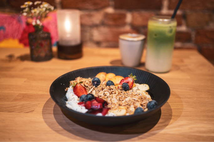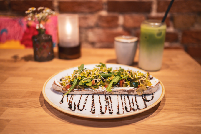 Auf unserer Karte findest du warme Brote wie Grilled Cheese, Smashed Avocado (vegan) oder ein Brot mit meditteranem Antipastigemüse, dazu cremiges Bio-Rührei, Joghurt mit hausgemachter Granola oder ein kleines Frühstück mit Croissant, Cappuccino & frisch gepresstem Orangensaft.